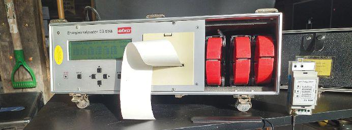 This is my old Ebro EB 1288 Energieanalysator. To the right, an example of the device we use now, which can be placed hundreds of miles away and monitored from the comfort of my office. (Author photo.)