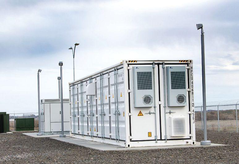 Battery storage at Energy Northwest’s solar array. Batteries are a critical component of microgrids, which also often include backup generators to withstand emergency outages during a range of weather conditions.