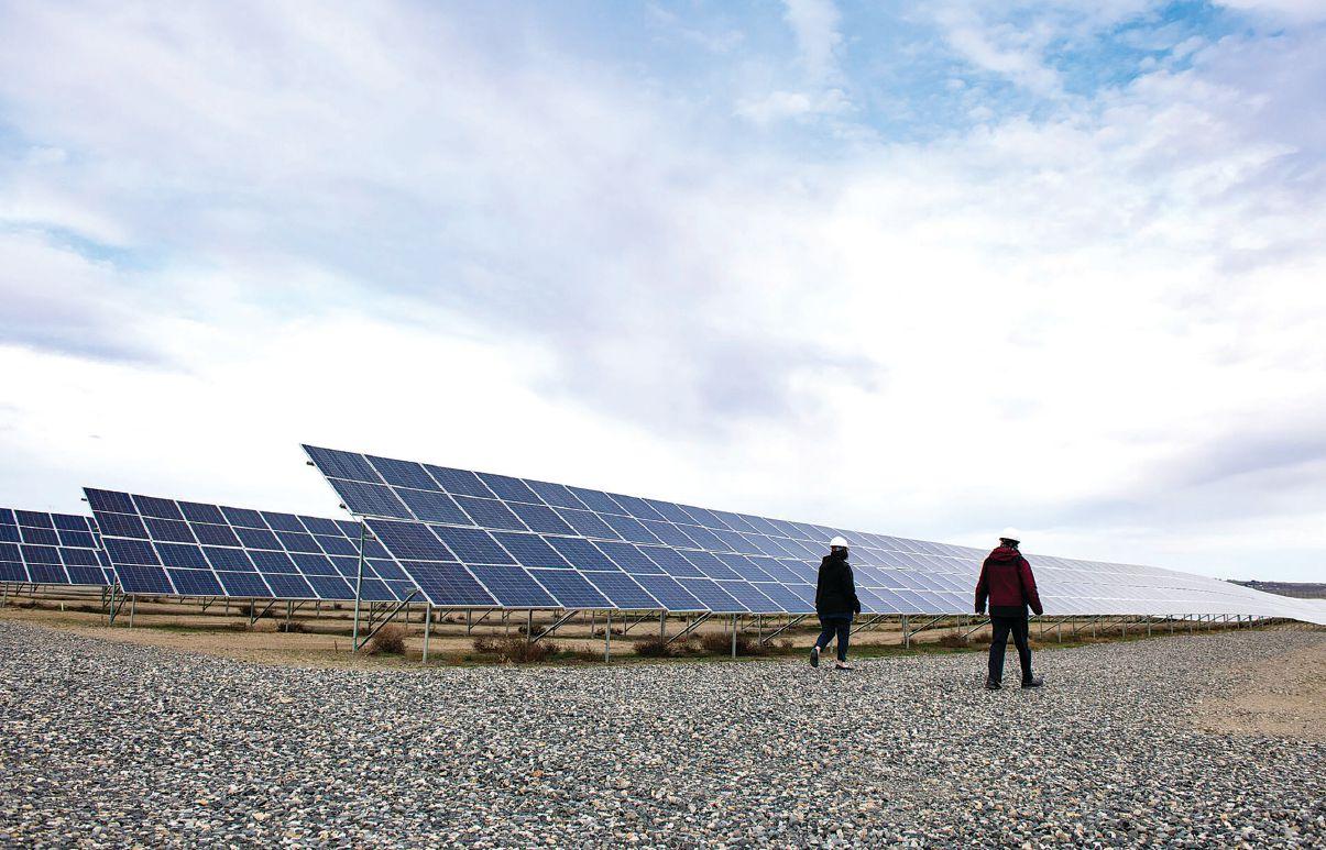 A solar array at Energy Northwest’s Horn Rapids Solar, Storage & Training Project in Richland, Wash. This facility combines solar generation with battery storage.