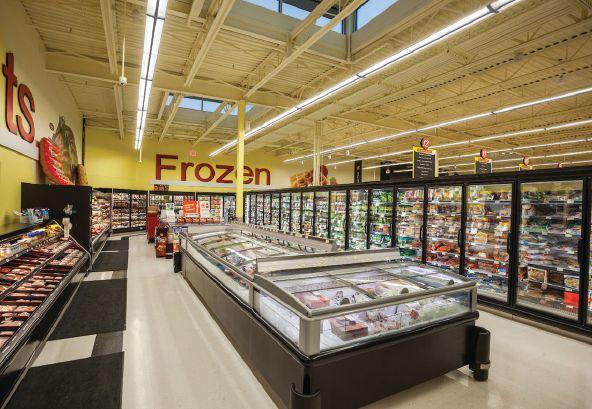 Melchior ended up selecting CS18 LED suspended ambient luminaires for lighting down the store’s aisles and CR24 LED troffers for the deli, bakery and offices. Both products promised 90-plus CRI and consistent colour temperatures. In addition, WS4 surface ambient luminaires were deployed inside the freezers and coolers and Edge LED high-output area luminaires in the parking lot.