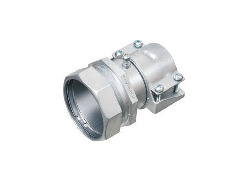 Perfect for data center remote power panel feeds, panels, equipment feeds and EV Chargers in parking garages, Arlington’s Listed CableStop™ Transition Fittings deliver the efficient, cost-effective way to transition feeder cables to 1.25", 2.5", 3" and 3.5" EMT, IMC and RMC conduit in protective drops, risers and feeds to panels and equipment. Our new CableStop fittings integrate our patented, versatile and SKU-reducing 8412 series cable fittings, with Arlington conduit fittings, allowing for easy transitions to larger knockout sizes. Available with set-screw or compression connections into 1.25", 2.5”, 3” and 3.5” conduit, they ship with multiple end stop bushings that vary the size of the opening – along with a free template select the right bushing for the cable.