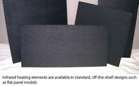 Infrared heating elements are available in standard, off-the-shelf designs such as flat panel models, but there is a host of custom infrared elements that have been developed by OEM suppliers to meet the unique requirements of specific applications.