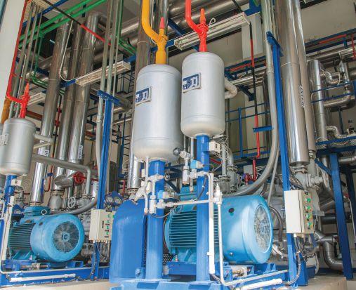 operating air compressor. The fact that two or three compressors will supply the required air of the food & beverage plant ease the capacity control situation, because one machine can be stopped to reach part-load. For instance, some plants use a “2+1” arrangement; in other words, two operating 50 per cent of the total required air with another 50 per cent package as standby. In this case 50 per cent part-load can be achieved when only one package is operating.