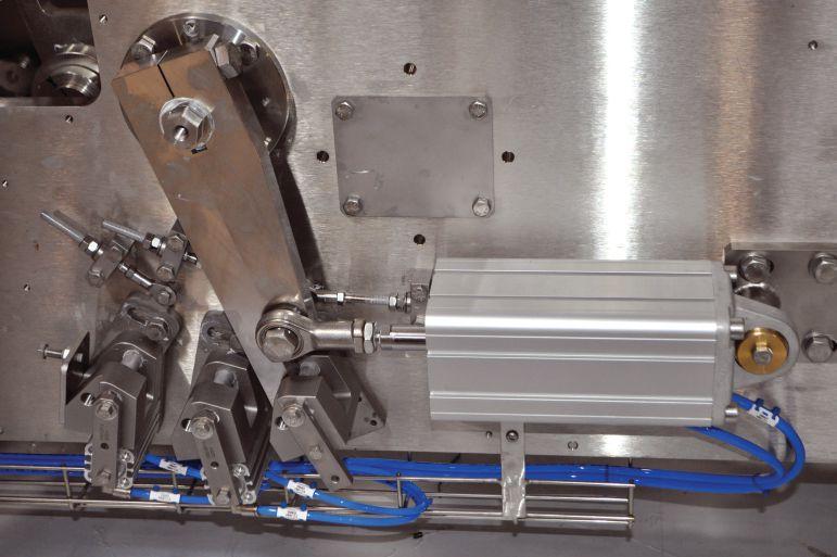 The system has been optimized by Elopak so that it can easily be adjusted to accommodate different carton sizes. Since all machine processes are geared to the top height of the packaging, the user simply has to adjust the bottom height using the Aventics CCI compact cylinder when switching products.