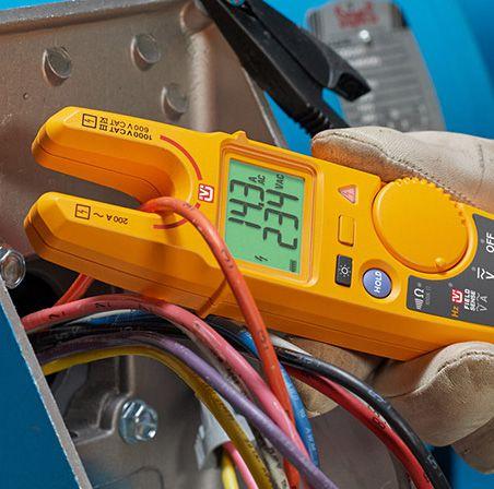 The Fluke T6 Electrical Tester is an electrical tester that takes simultaneous voltage and current measurements without test leads. The T6 testers now make it possible to take reliable true-rms measurements in crowded junction boxes or along conductors with inaccessible endpoints, saving time, minimizing potential errors and greatly reducing the possibility of arc flash. www.fluke.com