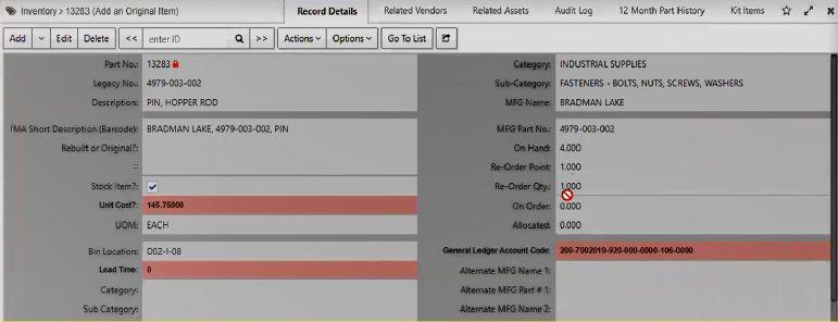 to manage parts details, including the vendors, reorders, and receiving. Once plants started validating parts, estimates and counts began to improve. “ We have reorder points on our inventory,” said Robison. “The inventory controller has to put in a lead time, bin location, cost, vendor information, and reorder points.