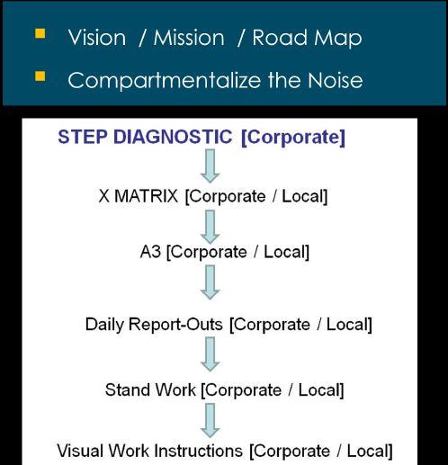 A3 – Includes an in-depth and granular approach to ensure a big project is broken down into simple tasks to be completed by assigned individuals within a four-week timeframe. However, are still focused on accomplishing the larger goal identified within the X-matrix.