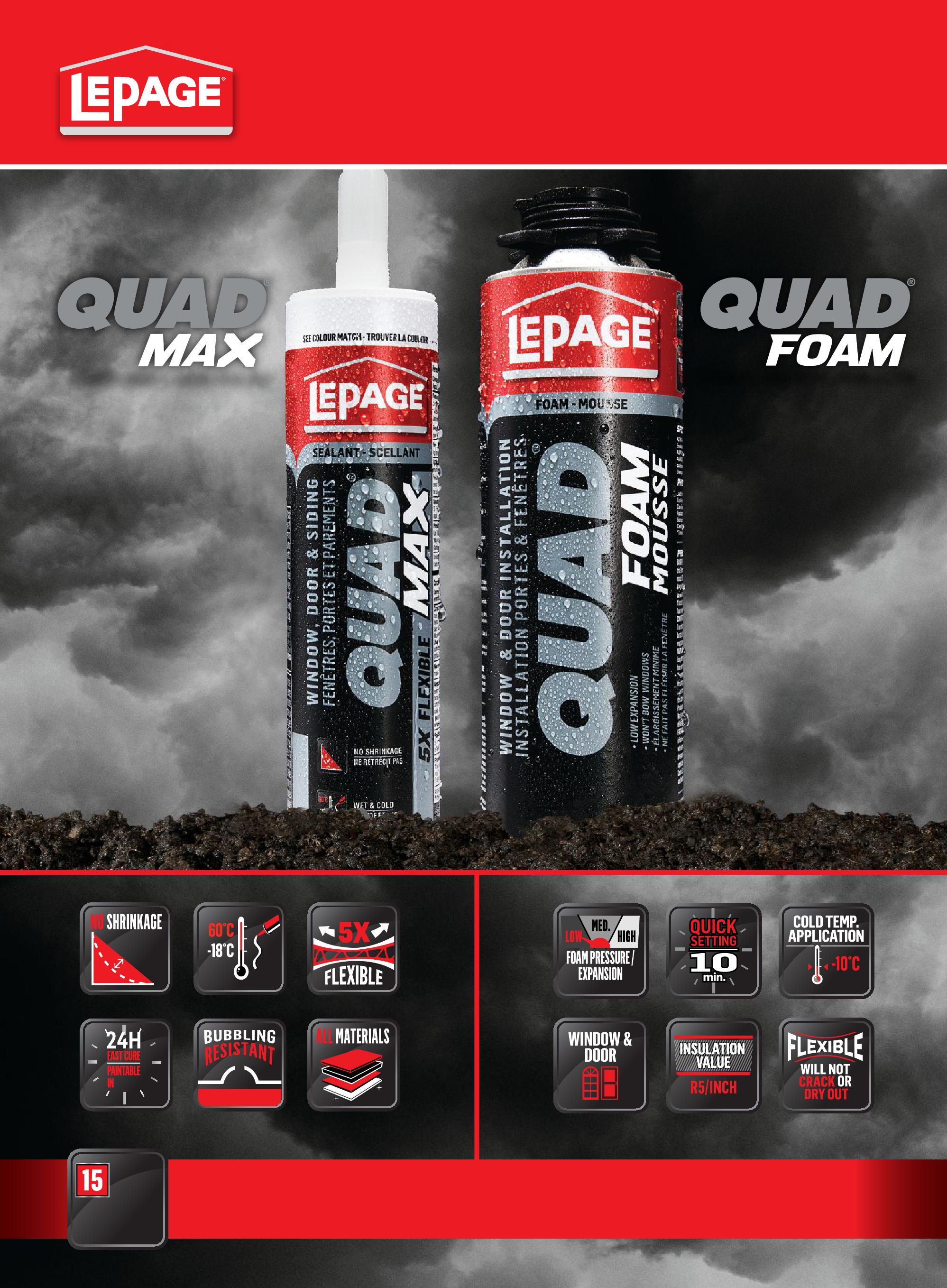 QUAD® Max & QUAD® Foam complete the LePage QUAD® Window and Door System. The toughest barrier against air & moisture.