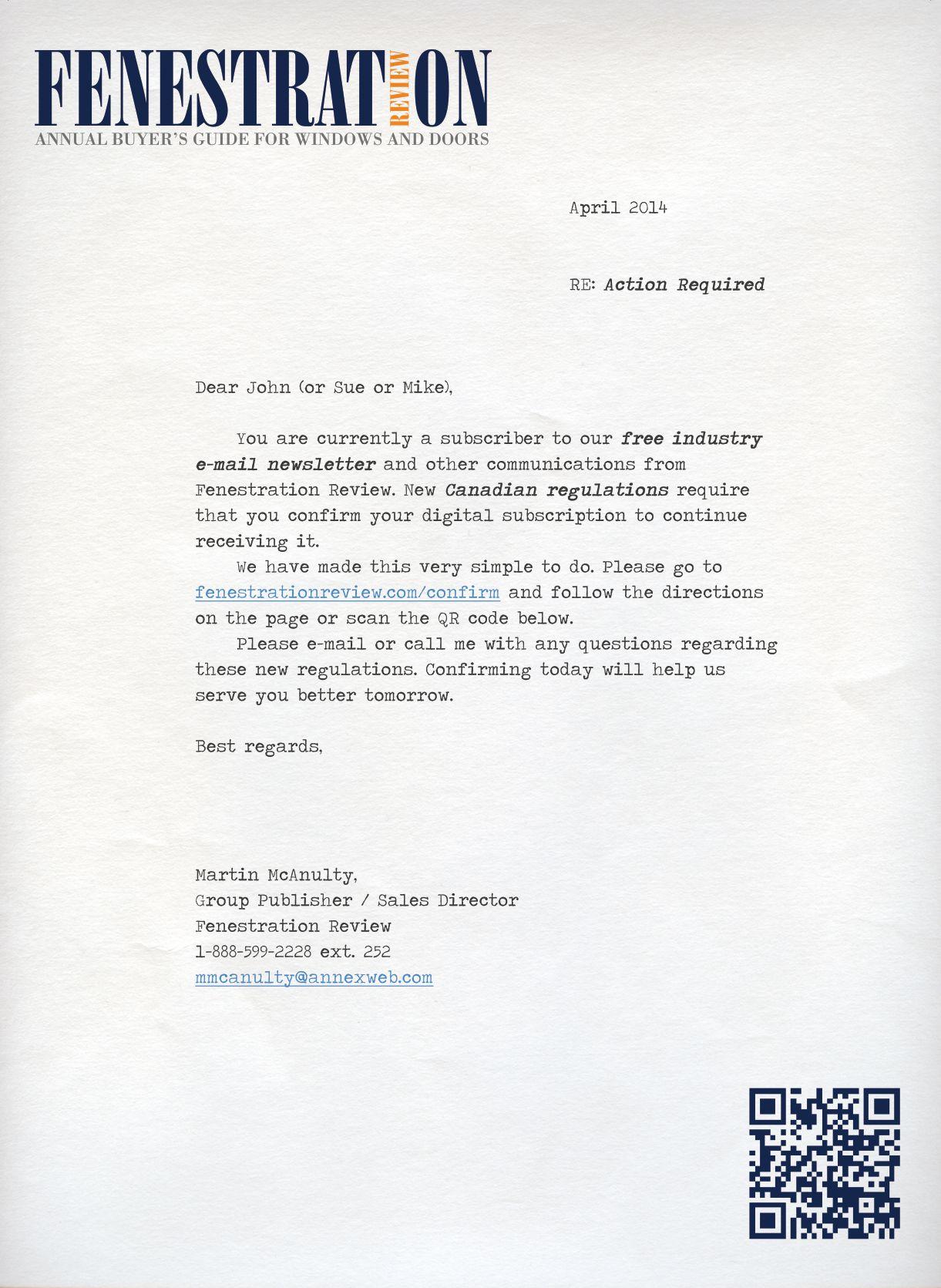 Occasionally, Fenestration Review will mail information on behalf of industryrelated groups whose products and services we believe may be of interest to you. If you prefer not to receive this information, please contact our circulation department in any of the four ways listed above.