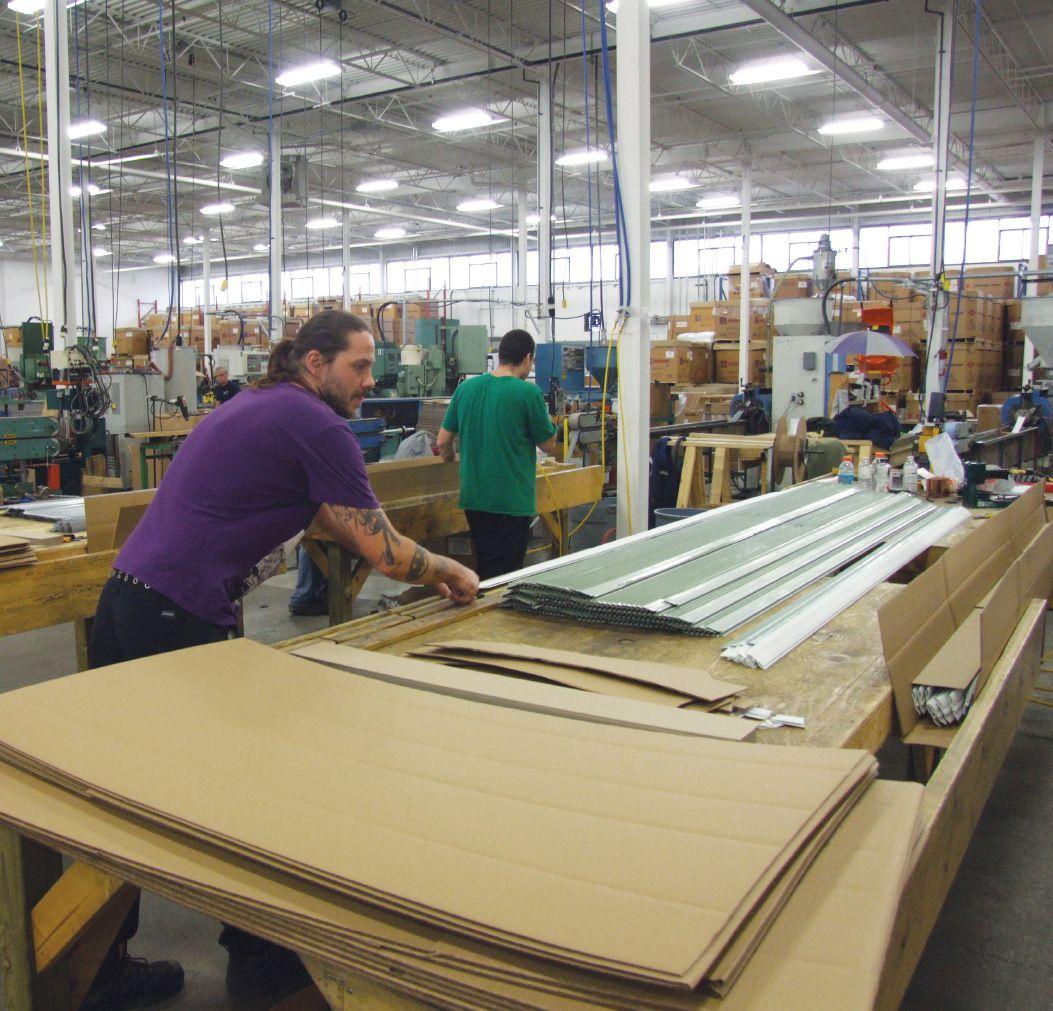 Elton Manufacturing was started in 1981 by Tom Boer, a Dutch immigrant who got fed up with farming. He is still majority owner of the company today, though Beavan and third partner Pigliarolo take care of most of the day-to-day oversight. There are two manufacturing plants: an extrusion plant, an injection molding plant, plus a warehouse and a tool and die shop. Elton started out extruding weather stripping for garage doors, and to this day its weather stripping remains a market leader and revenue bedrock for the company. But things have grown and diversified over the years. Today, Elton also produces entry door window frames, garage door windows, extruded profiles for windows and doors, laminated products for windows and doors and extrusions for the furniture industry.