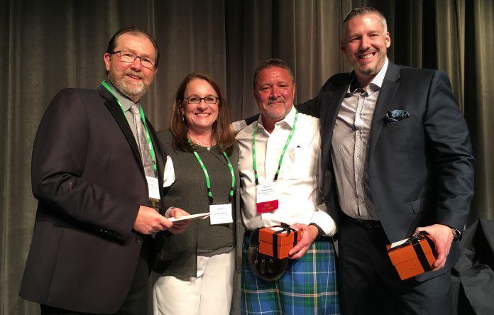 Greg Dickie (right) and Dan Darcy of Darcy Associates (kilt) were thanked by Doyle and FenCan executive director Cindy Gareau for their efforts as local hosts.