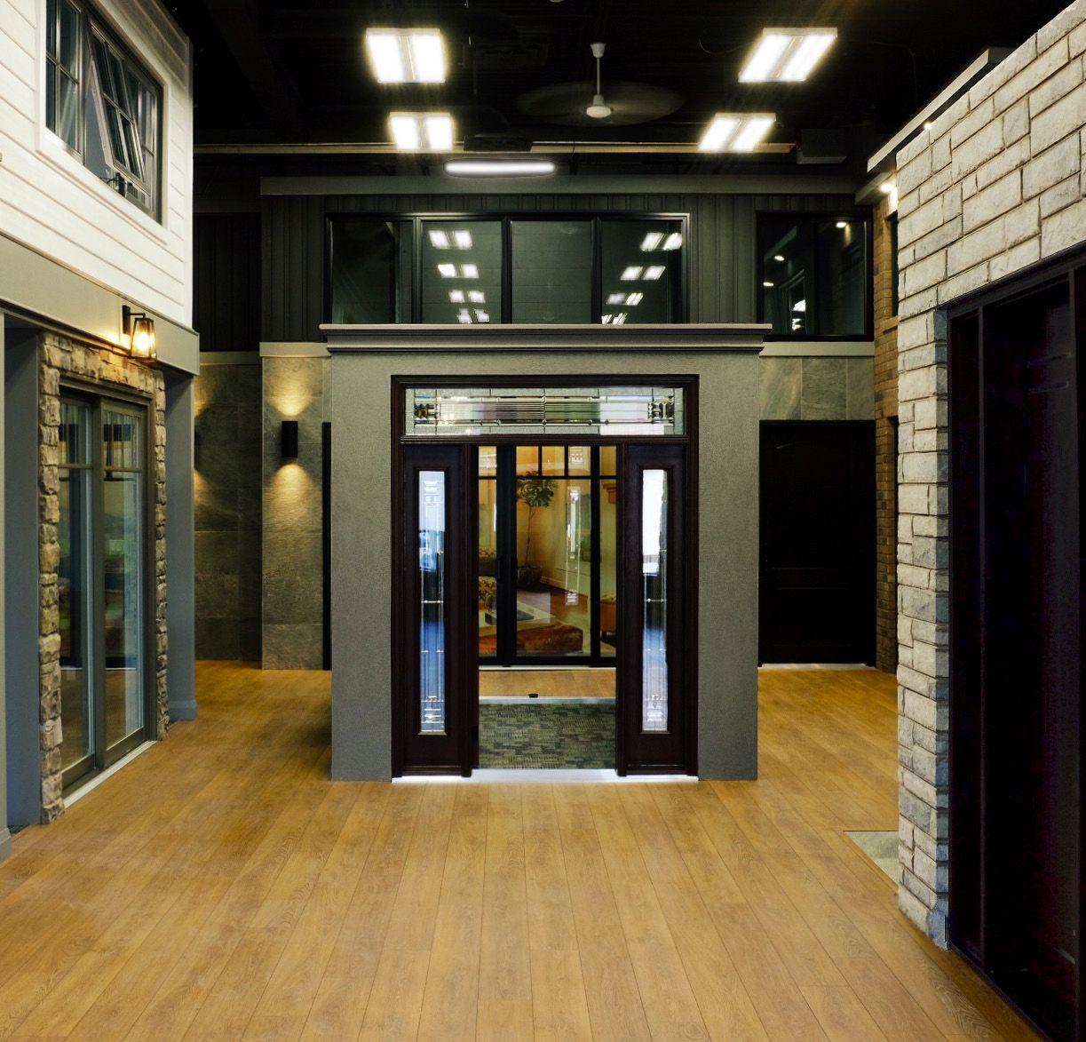 In the window and door industry, it is no secret that entry door options are exhaustingly vast, which can easily create an overwhelming experience. A home’s front entry is the first impression and it’s one of the few elements that can translate a homeowners personal taste from both exterior and interior perspectives. This can be a costly and important decision to make. Kempenfelt wanted to create spaces within the showroom to allow full vantage points for their doors so that a decision can be easily made. There is an area in the showroom called “the townhouses” which includes entry systems in various colours and finishes complimenting modern through to traditional designs, all in a harmonious space. This area showcases the principle that individual taste can differ from one home to another while