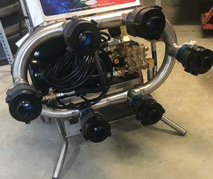 Engineered hose washers are available from many different manufacturers and can be used in the station or connected to a fire truck.