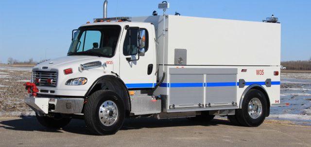 The Gliechen Fire Department in southeastern Alberta took delivery of a Fort Garry Fire Trucks-built Crusader Tanker in early April. The tanker is a 2017 M2-106 Freightliner model made with 5052 marine-grade aluminum. It has a regular two-door cab and runs on a 350-hp Cummins ISL engine. The truck comes complete with a Hale Sidekick pump, which has a 2,000-imperial-gallon Copoly Tank, and an Allison 3000 EVS transmission.