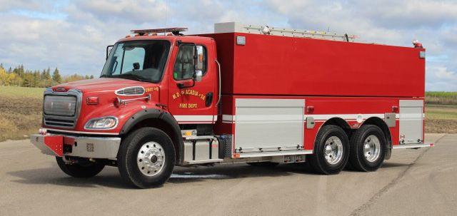 The Acadia Valley Fire Department in southeastern Alberta added a new tanker to its fleet on May 10. The department took delivery of a Crusader Tanker on a Freightliner M2 chassis from Fort Garry Fire Trucks. The truck has a 450-hp Cummins ISL engine and Allison 3000 EVS transmission. The Pro-Poly Hale Sidekick 750 pump has side control panels and a capacity of 3,000 imperial gallons.