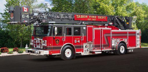 A new unit was delivered to Taber Fire Department in Alberta earlier this year. The unit is from Pierce MFG and sits on an Enforcer chassis and has a 110’ Ascendant Heavy-Duty Platform body. It has a Pierce PUC 1500 gpm pump and has a Husky 3 foam system. It also features a 500-gallon tank, Harrison Hydraulic generator and 450 hp.