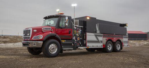 Raymond Fire Department in Alberta took delivery of an MXV pumper from Fort Garry Fire Trucks. Manufactured on a Freightliner chassis with a 360 HP Cummins L9 engine and an Allison 3000 EVS transmission, this vehicle features a 5083 saltwater grade aluminum body, Darley PTO PSP 1000 pump, cross control pump operator panel, rear stainless steel ladder, Hannay hose reel, Akron ball valves, Zico hydraulic ladder rack, Akron Fire Fox bumper monitor, Federal Signal emergency lights, FRC scene light package, Foam Pro 2001, and a Fireman’s Friend external tank fill.
