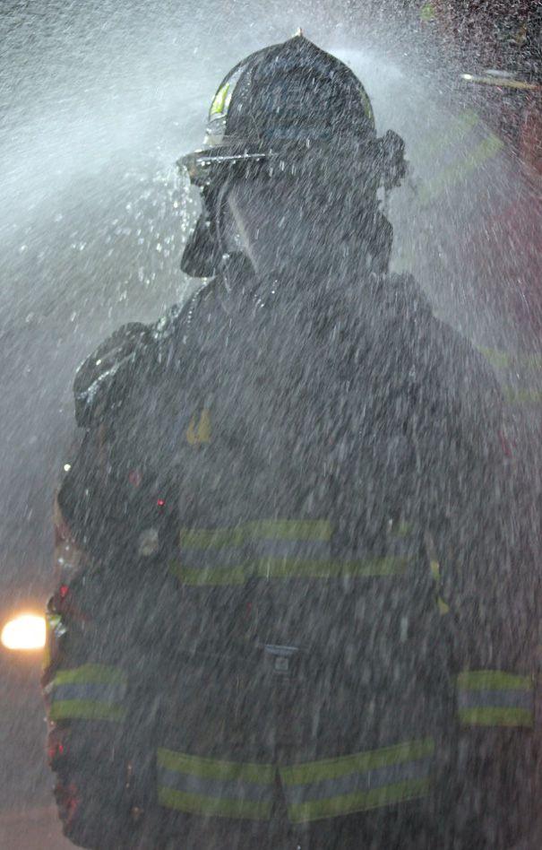 We tried to have a photographer friend set up a photo of a firefighter hosing down another firefighter, but the proper procedures weren’t in place in the photo (the firefighter doing the hosing down was not wearing breathing apparatus) – which illustrates the lack of understanding of the issue.