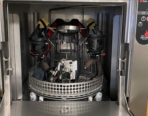 He said their research led to discovering the Solo Rescue Decon Washer, a machine built to meet the needs for cleaning contaminated equipment with the goal of developing healthier ways to decontaminate SCBA and other protective gear from hazardous toxins and carcinogens, specifically polycyclic aromatic hydrocarbon (PAH) particles. The machine cleans the gear in under 10 minutes.