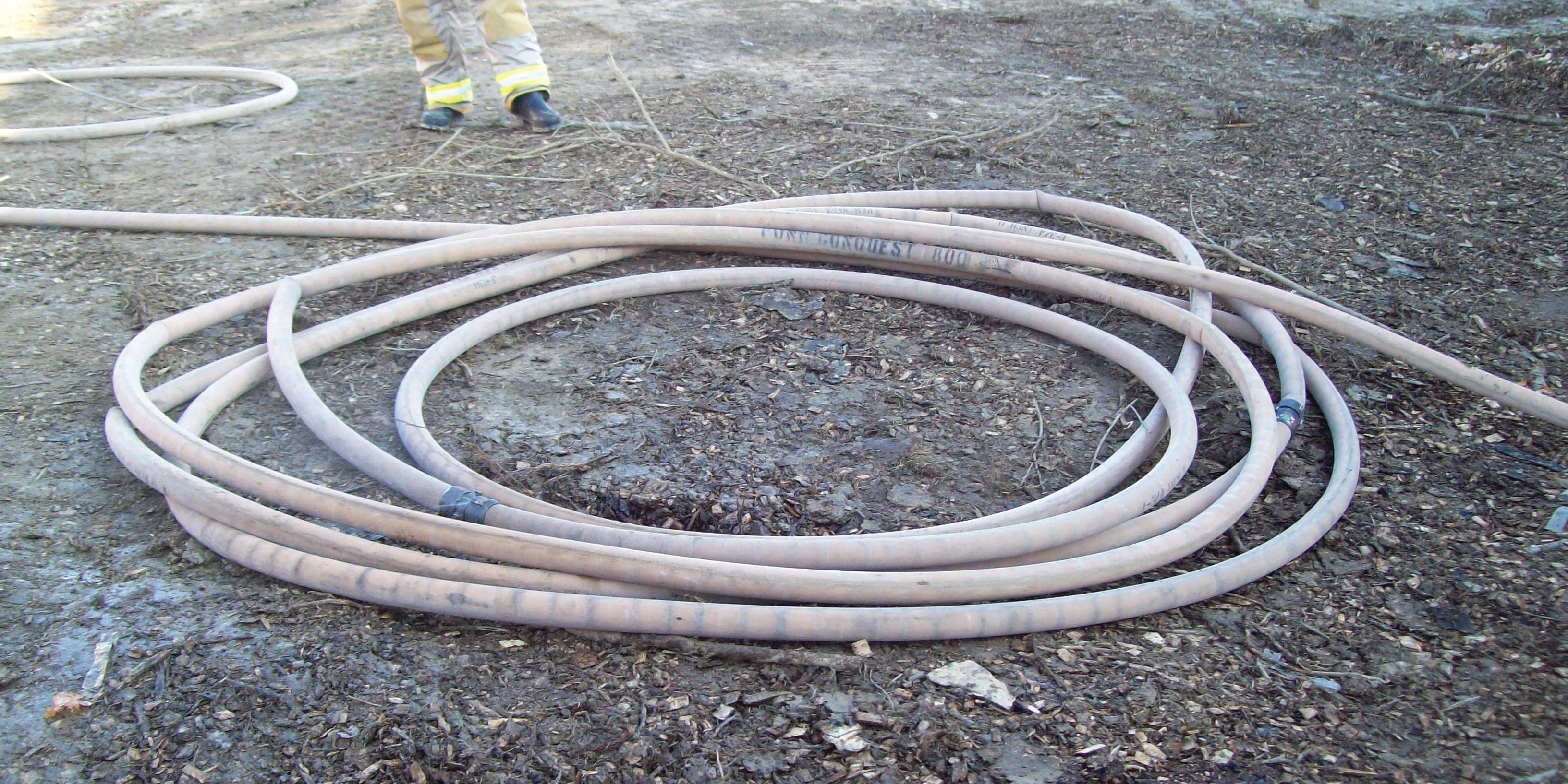 This truck is a quint, so it has a waterway. With the ladder fully extended, inspect the chrome water tube for rust and pitting. If pitting and rusting is evident, note its location and advise the maintenance crew. Pitting is usually found on the lowest part of the tube, or the part facing the ground, indicating that the waterway has not been completely drained after use. If the water you are pumping is from a pressurized source or a static source, it is imperative that the stick be raised (observing all overhead obstructions) and completely drained after use. Both treated and untreated water contain hard sediment, which will sit and thicken in the lowest part of the tube if it is not allowed to drain. The clearance between the waterway tube and the outer painted tube is extremely tight inside. As you drive down the road, the chrome waterway bounces slightly inside the outer, painted housing tube. This shakes up the sediment, which acts like a sand blaster and easily damages the chrome. So, sitting in water that is being sandblasted internally makes pits, and then causes rust. If you extend the waterway, the rusty pits will go by, causing small cuts every time the waterway moves past the rusted spots, resulting in water leaks. Draining the waterway completely helps to prevent this.