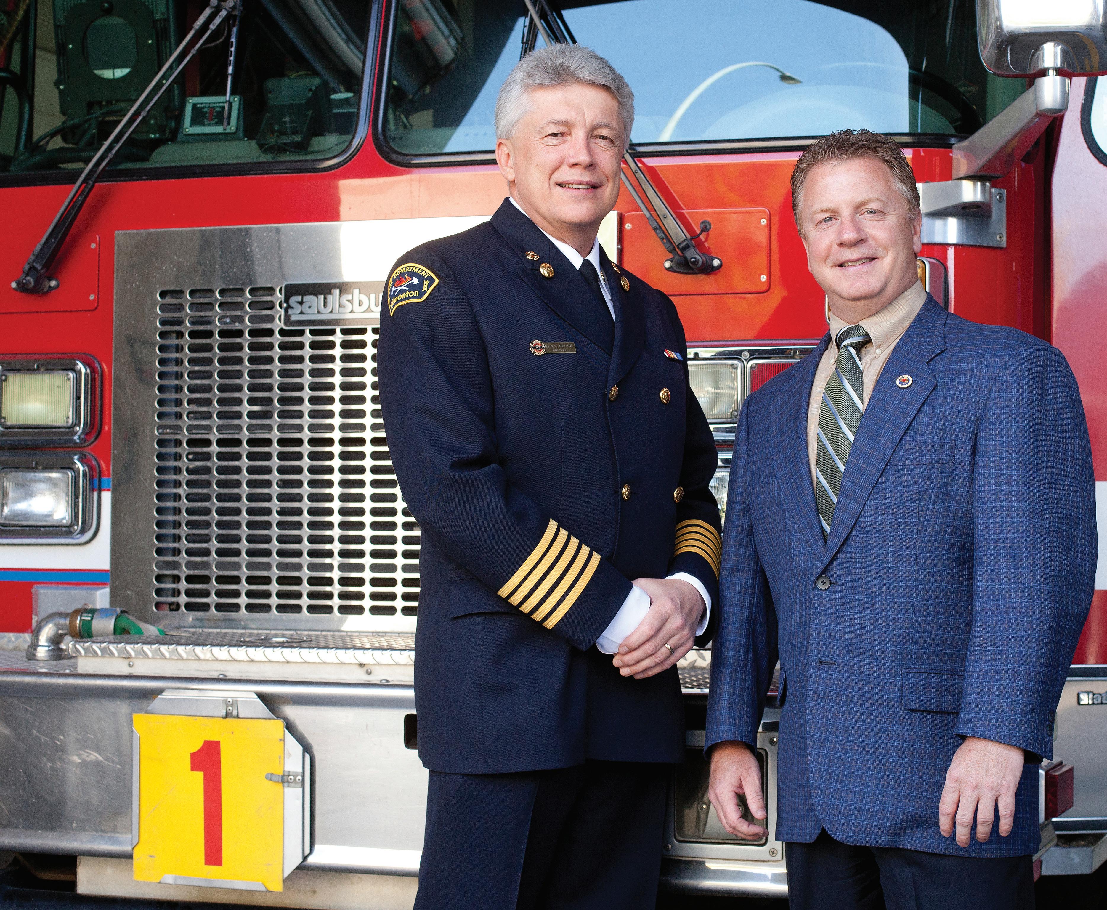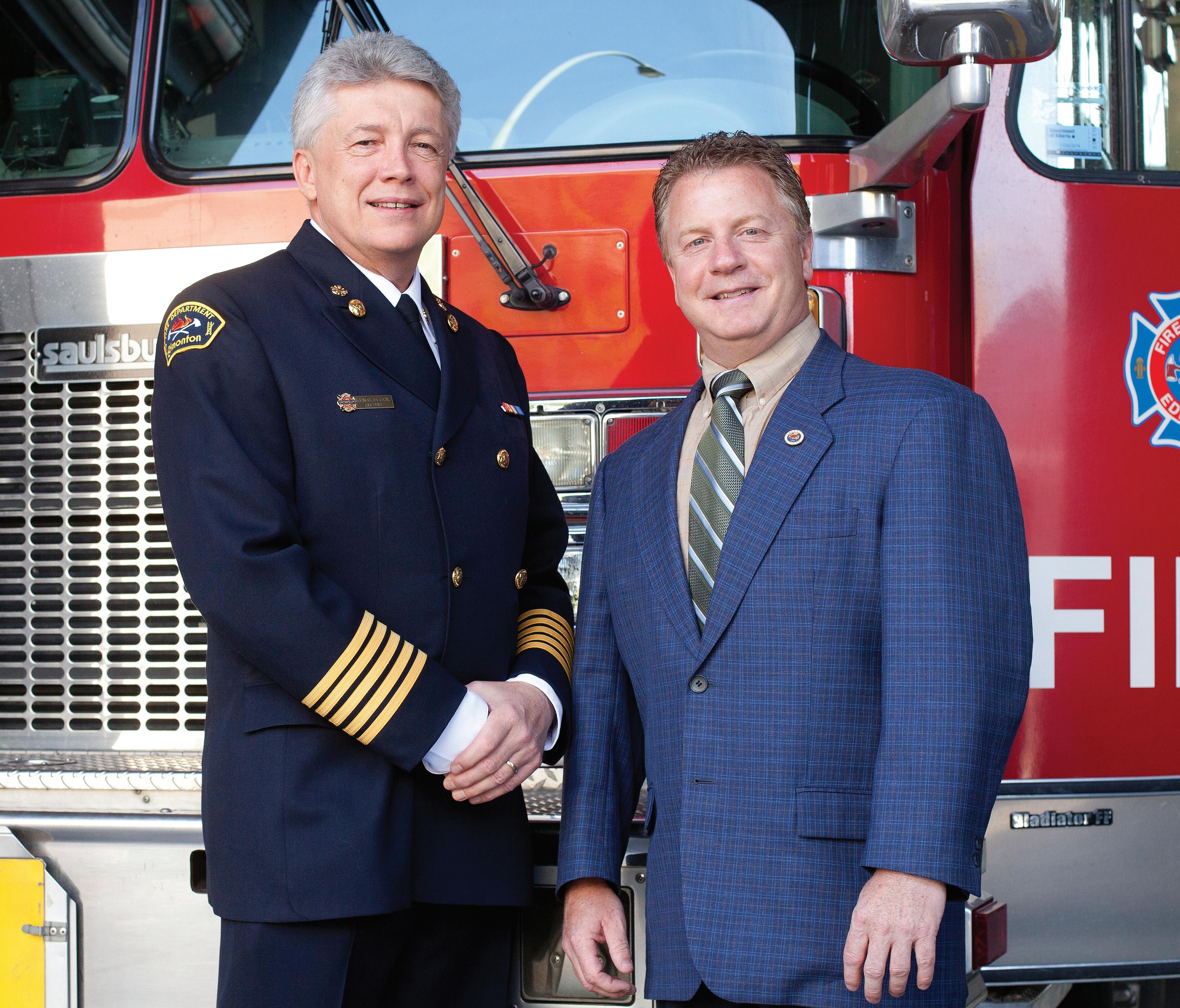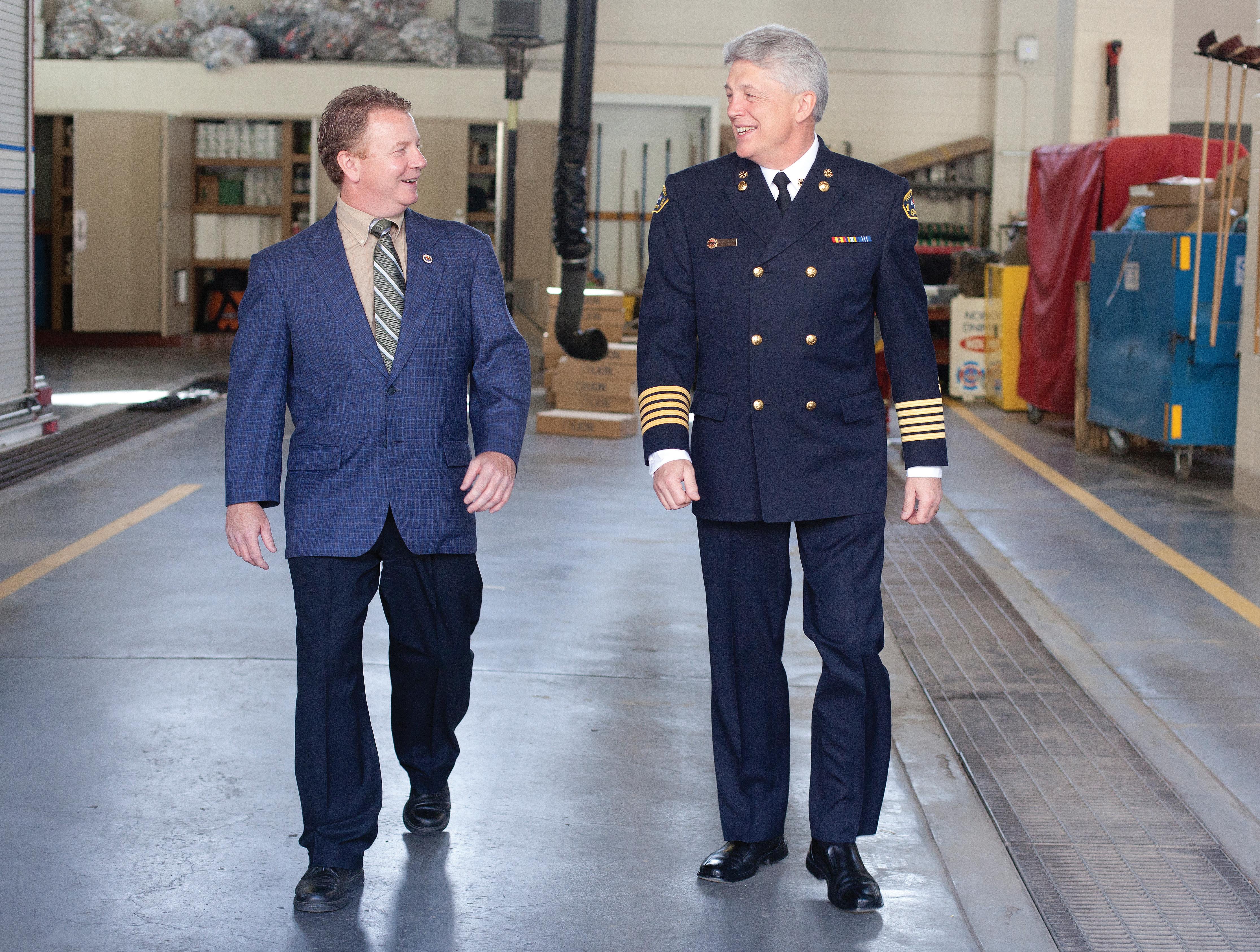 Edmonton Fire Chief Ken Block and union president Greg Holubowich have forged a positive, productive partnership. See story page 10.
