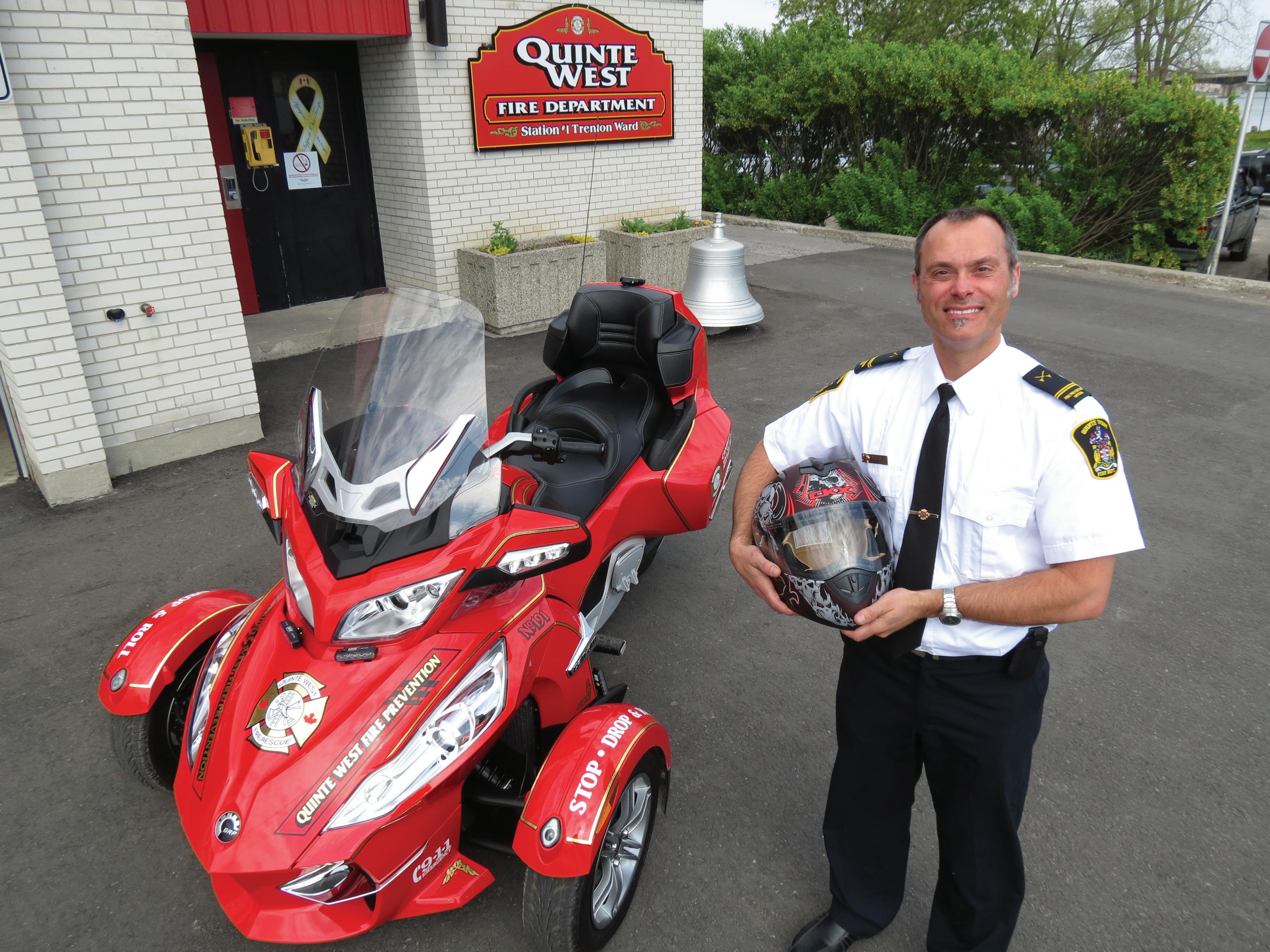 The Quinte West Fire Department in Ontario is spreading its fire-prevention message with a new Bombardier Spyder motorcycle.