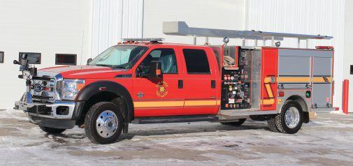 Pine Creek First Nation Volunteer Fire Department in Manitoba took delivery in January of a Fort Garry Fire Trucks-built mini pumper. Built on a Ford chassis and powered by a 300-hp Ford engine and a Torqueshift transmission, the unit is equipped with a Darley HM350 pump, a 300-gallon CoPoly tank with 15 IG integral foam cell, a Foam Pro 1600 system, front bumper turret and pump and roll.