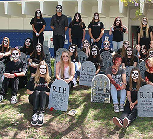 A hard-hitting, high school program in the United States called Every 15 Minutes drives home the statistic that every 15 minutes someone is killed by an impaired or distracted driver. In high schools, a student is pulled from the classroom every 15 minutes, returning as the living dead, with white face make up, a coroner’s tag, and a black Every 15 Minutes t-shirt. By the end of the program, students have written their own obituaries, received a letter from their parents, heard an audio-visualization of their own deaths, and experienced mock scenarios that involved everyone from first responders to police-station booking officers to the coroner.