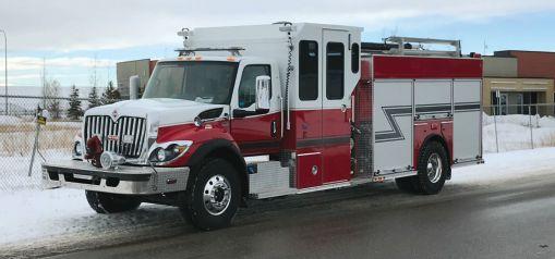 The Brooks Fire Department in Alberta took delivery of a MaxiMetal TME pumper from Commercial Truck Equipment. This unit runs on a Cummins L9 engine with 450 hp and sits on an International chassis. It is equipped with a Foam Pro 1600 system and a HALE RSD-J-150 pump that holds up to 1,000 IG.