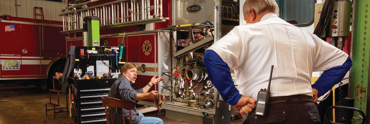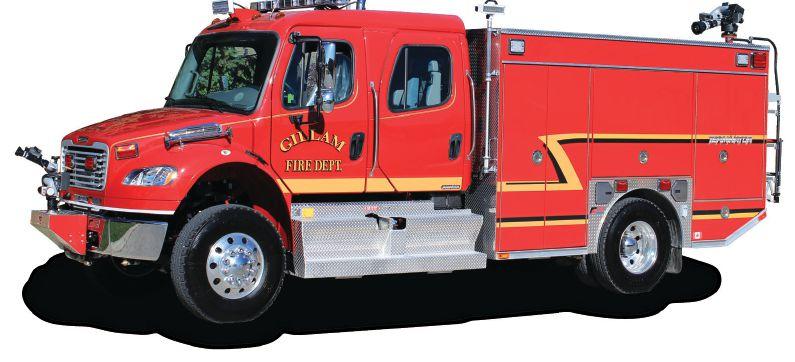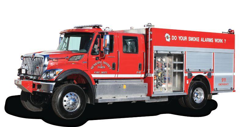Most engines are outfitted with high-visibility reflective chevron markings on the rear of the truck to draw the eye of potentially distracted drivers on roadways.