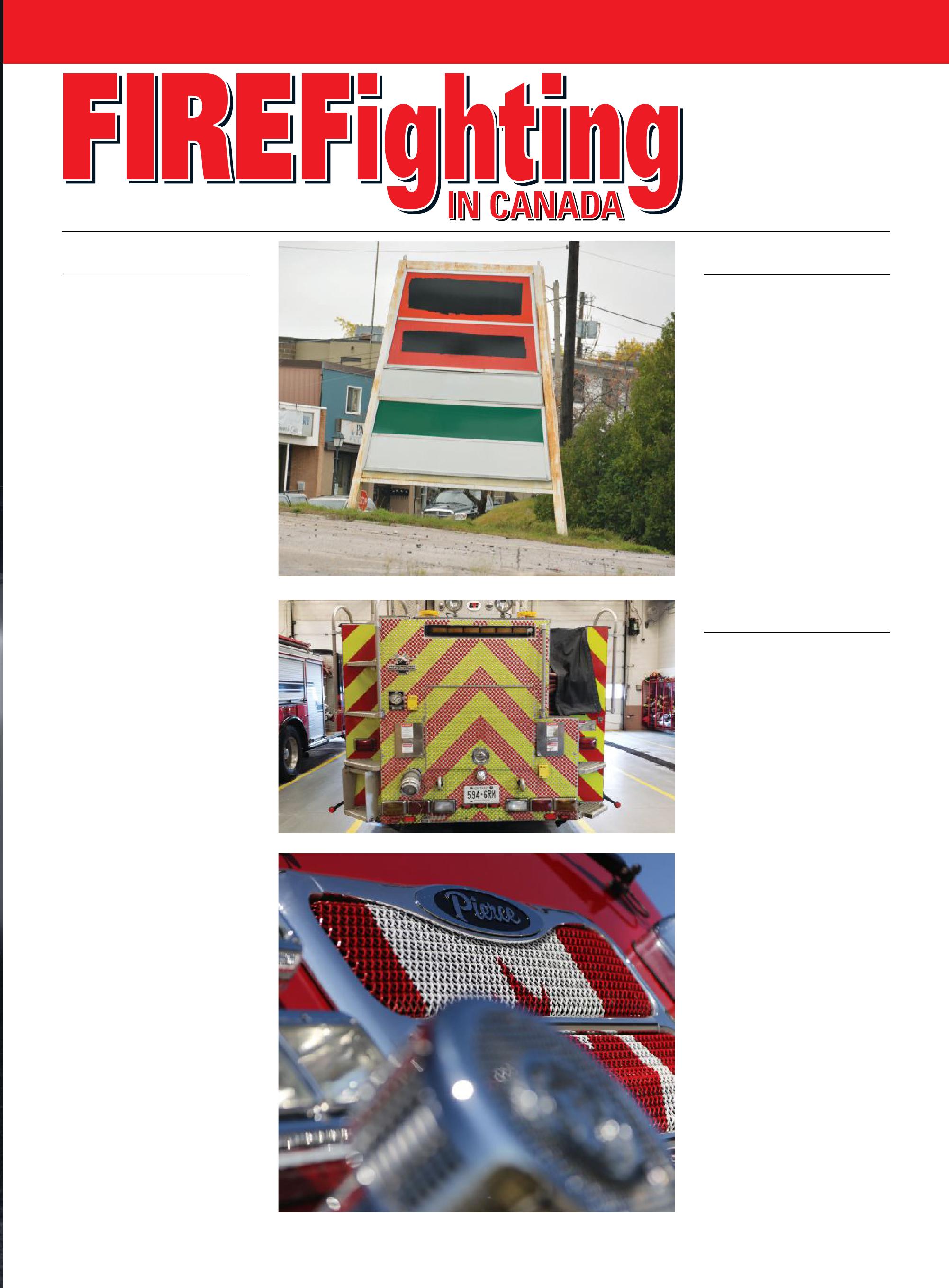 All advertising is subject to the publisher’s approval. Such approval does not imply any endorsement of the products or services advertised. Publisher reserves the right to refuse advertising that does not meet the standards of the publication. www.firefightingincanada.com