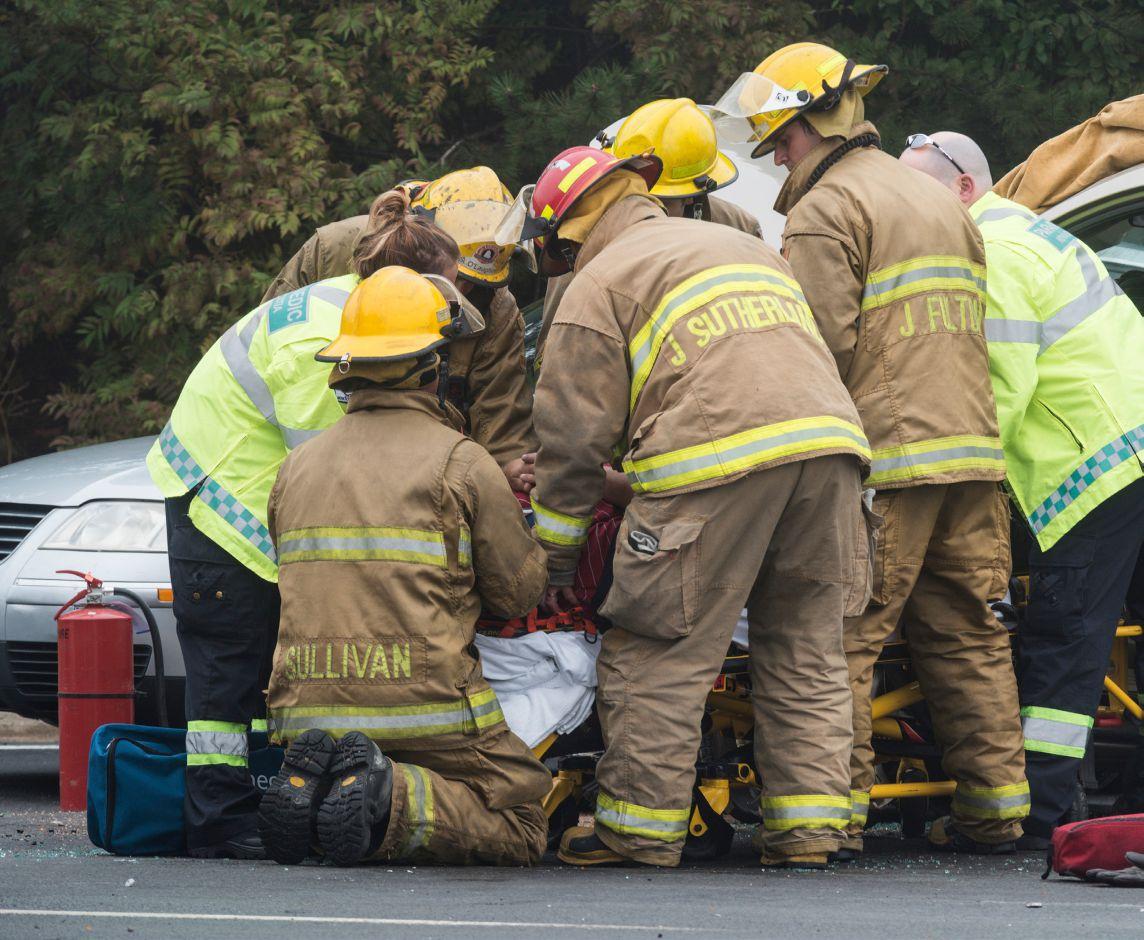 As the firefighters approached the scene, they could see a truck in the ditch on the east side of the highway and the ambulance parked near the truck. The crew reported on-scene at 12:44 and Capt. Rick Anderson assumed command. Firefighter Kent Silbernagel was dropped about 200 metres short of the scene to set up warning signs and firefighter Chris Haichert was directed to drive the engine up to the accident scene.