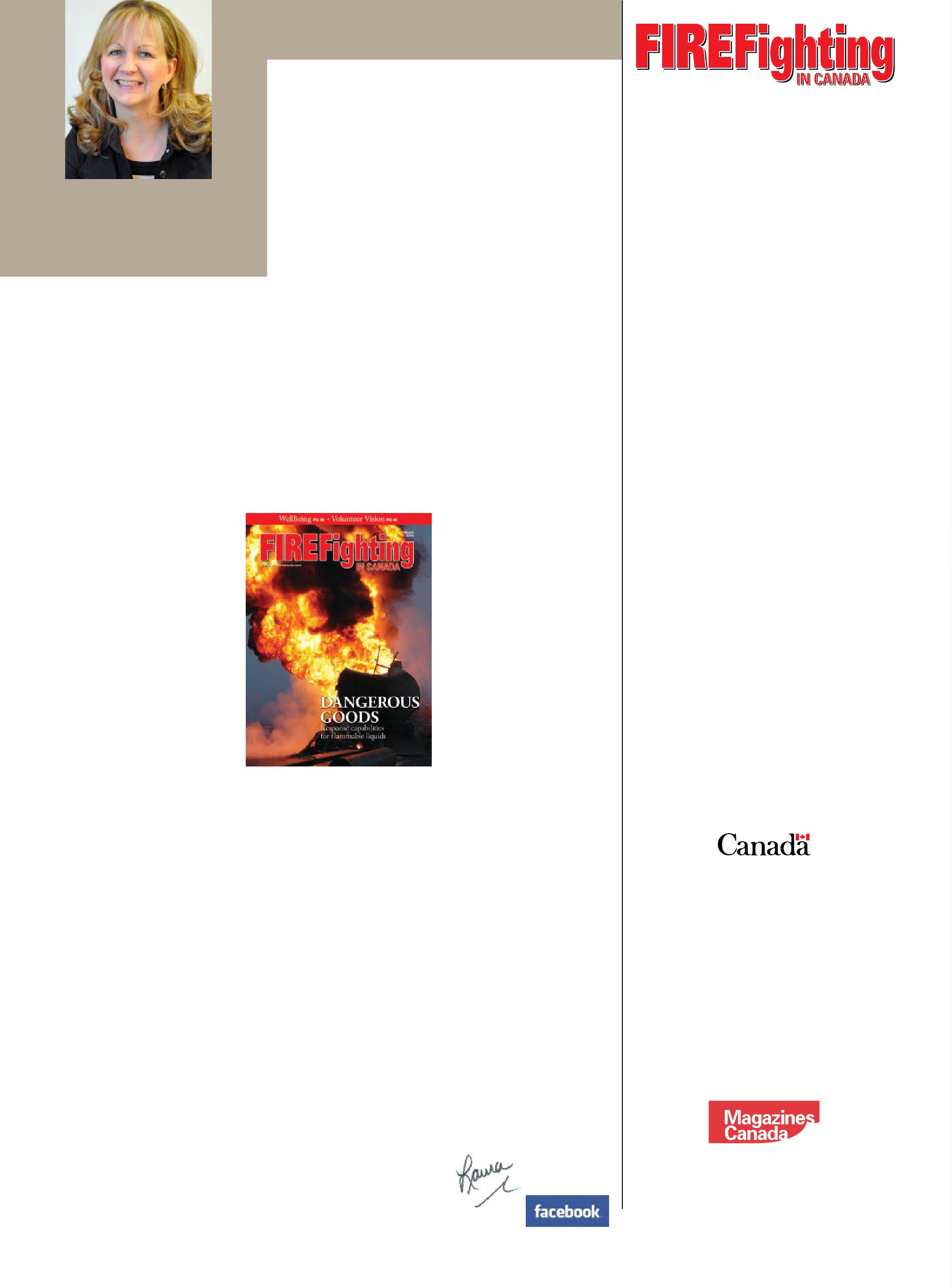 All advertising is subject to the publisher’s approval. Such approval does not imply any endorsement of the products or services advertised. Publisher reserves the right to refuse advertising that does not meet the standards of the publication. www.firefightingincanada.com