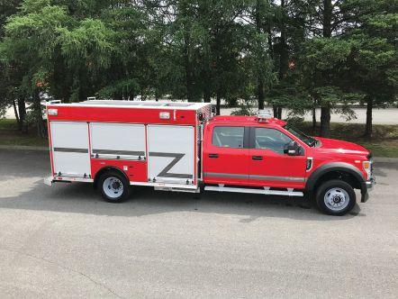 Pro. Built on a Ford F-450 4X4 crew cab, the vehicle is fitted with a Ford 7.3 L gasoline 335 HP engine and a Torqshift 10-speed automatic transmission. Additional features include a CET/Honda 2.5” wildland pump, 150’ 1” electric return booster reel, 400 G CET Poly water tank, Scotty 10 G foam
