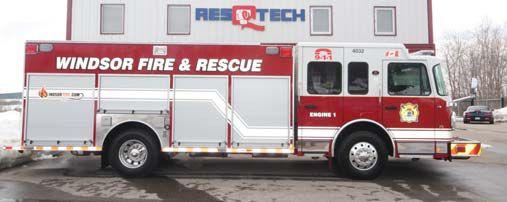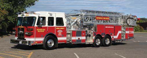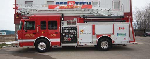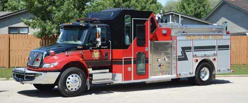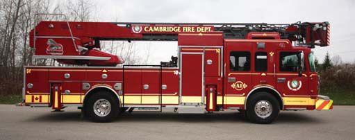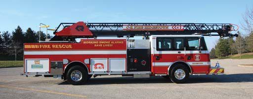 This unit was built on a Spartan MetroStar chassis, and is powered by a Cummins 450-hp engine and an Allison 3000 transmission. It features a 1,250-igpm Waterous pump, a 330-imperial-gallon water tank, a 23.8-metre (78-foot) three-section ladder and a 25-year corrosion protection warranty.