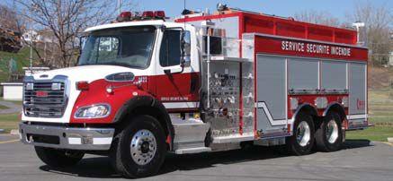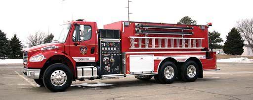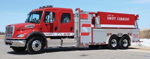 Built on a Freightliner M2-106 chassis, and powered by a 350-hp Cummins engine and an Allison 3000 transmission, this unit features a 1,000-gpm Darley pump, a 1,800-gallon water tank, a 25-centimetre (10-inch) manual-control rear dump valve, two hose reels with 30.5 metres (100-feet) of 2.5-centimetre (one-inch) hose, a TFT Tornado remote control monitor and nozzle, and a portable tank rack.