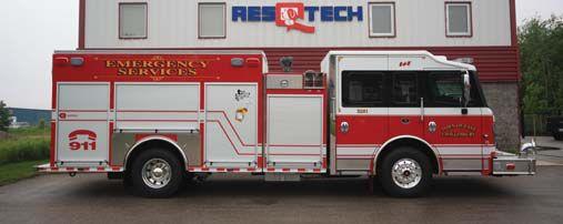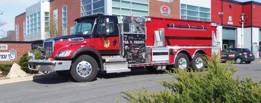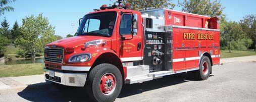This unit was built on a Frieghtliner M2-106 chassis, and is powered by a 350-hp Cummins engine and an Allison 3000 transmission. It features a 1,250-igpm Waterous pump, an Adventus 6 foam system, an 800-imperialgallon water tank, and a VMUX multiplex system.