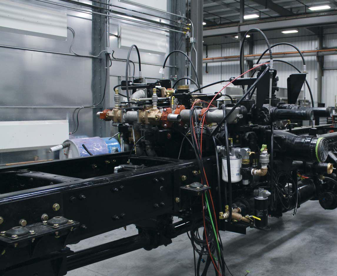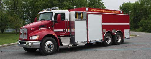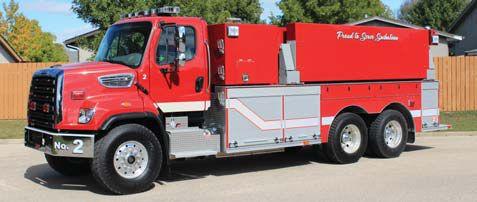 This unit was built on a Freightliner M2-106 chassis, and is powered by a 350-hp Cummins engine and an Allison 3000 transmission. It features a 1,000gpm Waterous pump, a 1,800-gallon water tank and a 25-centimetre (10-inch) manual-control rear dump valve.