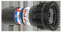 The rotating, swiveling waterway, allows the stream to be pointed in virtually any direction, within a hemispherical range without interrupting water flow.