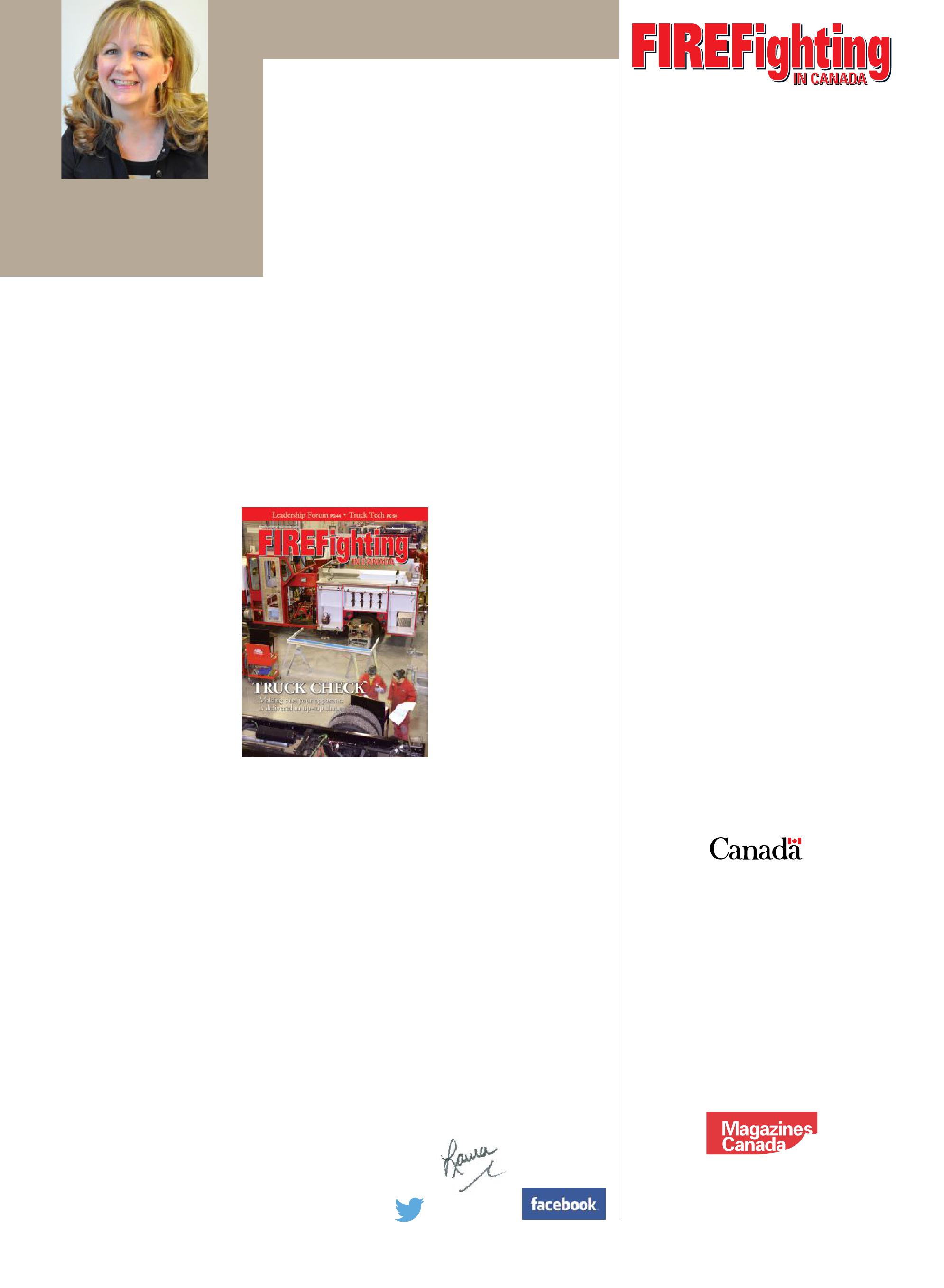 All advertising is subject to the publisher’s approval. Such approval does not imply any endorsement of the products or services advertised. Publisher reserves the right to refuse advertising that does not meet the standards of the publication. www.firefightingincanada.com