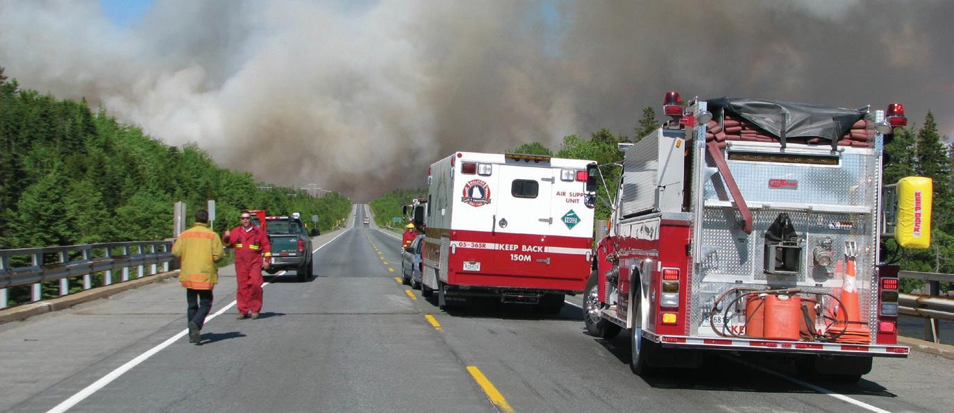 • The area was evacuated. Evacuation centres were set up in Cole Harbour and at the Seaforth Community Hall, where residents were regularly briefed on the progress in fighting the fire. “We were pushed back down Highway 107 several kilometres at a time; the fire was so fast and intense,” recalls Capt. Cory Dominix of the HRF&E’s Station 21. “Wild rabbits, foxes and raccoons were gathered all around us, just trying to get away from the heat and smoke. It was surreal.”