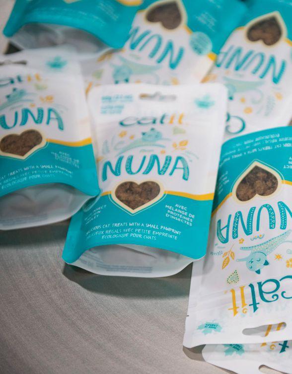 The two-flavour Nuna line is part of the Hagen Group’s Catit brand. Made from a mix of insect, yeast and meat protein—chicken or fish—the dry kibble went on sale both online and at retail locations across Canada in January, 2021. It is also available in the U.S., but only via the Catit.com website.