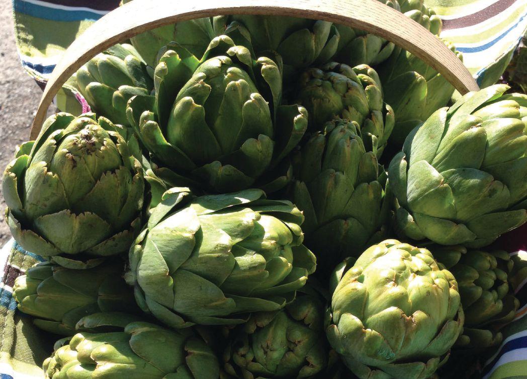 Artichokes are the immature flower bud of a thistle plant that’s native to the Mediterranean and now cultivated in Italy, Spain, France, U.S. (California) and Canada. Artichokes grow on a plant (that can be perennial or annual) that’s between two to five feet high, and a single plant will produce anywhere from 12 to 36 artichokes. The base of the leaves and the heart of the bud (but not always the fuzzy choke) are edible prior to flowering. Top Tomato Foods starts its artichoke harvest during the first week of August.