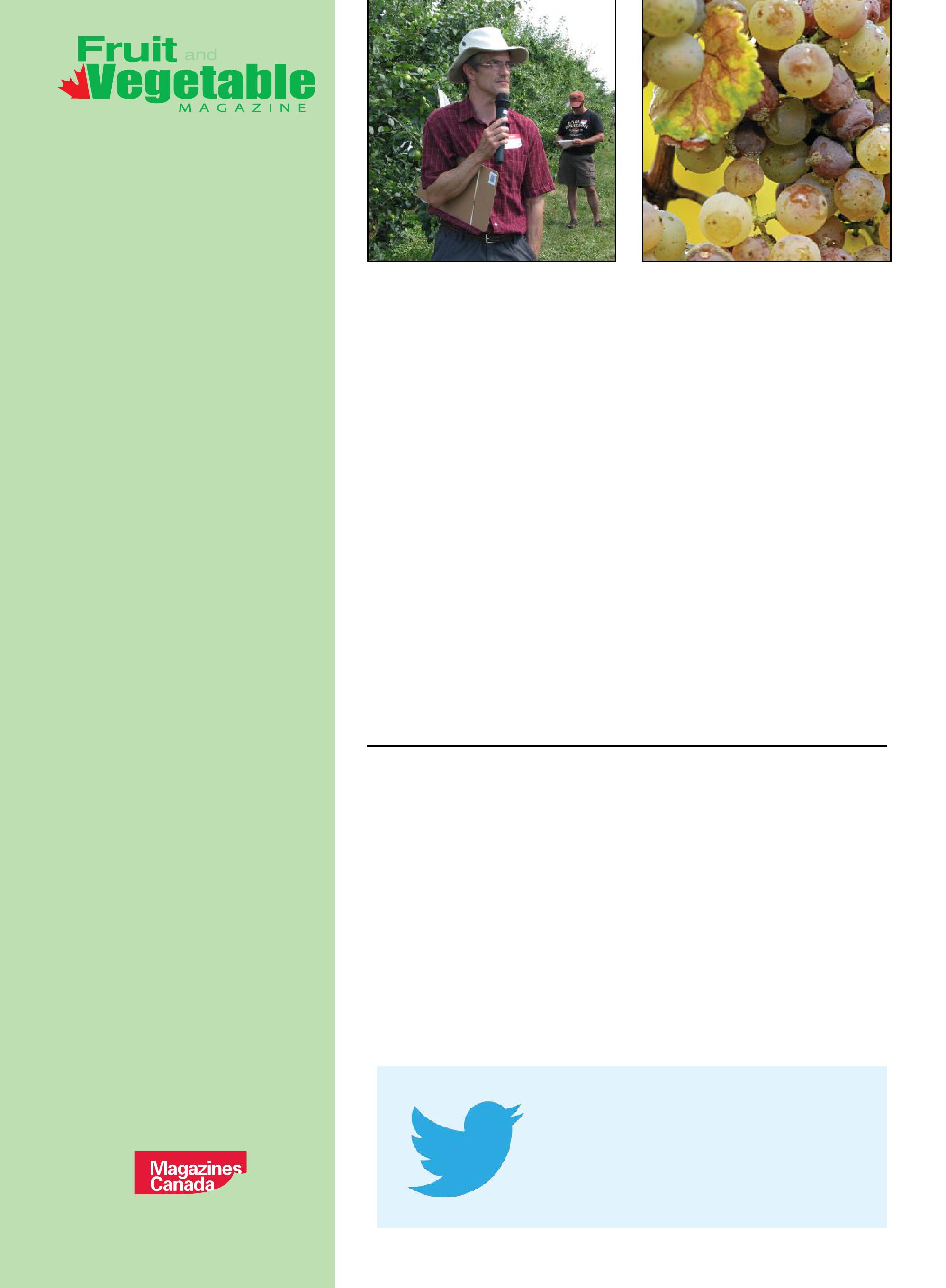with the latest news from Canada’s fruit and vegetable industry between issues of Fruit and Vegetable Magazine. Visit www.fruitandveggie.com and sign up for our twice-monthly e-newsletter or follow us on Twitter @FruitVeggieMag