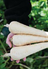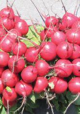 F1; matures in 25 days; hybrid radish; round bulb; bright red colour; medium tops; white interior; crunchy texture; holds up well in heat; highly uniform. Courtesy of Bejo Seeds