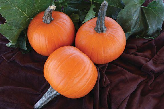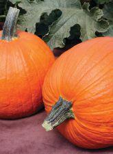 Matures 110 days. Blocky shaped pumpkin, well ribbed; long, thin handle, good uniformity; large vine. 2011 AAS Winner. Courtesy of Norseco