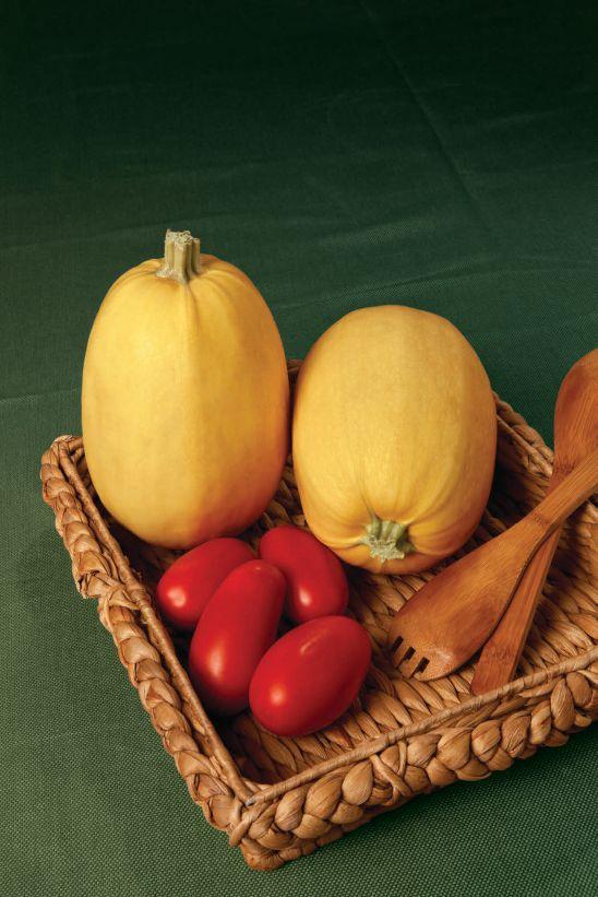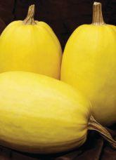 High yielding, hybrid spaghetti squash; canary-yellow skin at maturity; excellent uniformity, size, shape; grows on restricted vine. Courtesy of Sakata