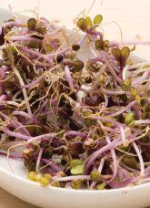 Sprouts 4 days. Beautiful red-purple sprout, ideal to put colour in meals, mild brassica flavour. Courtesy of Norseco