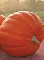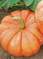 Matures 100 days. Large pie-class, burnt orange colour, rough skin texture, dark green handle, semi-vine plant. Courtesy of Norseco