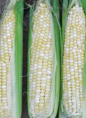 Matures 79 days; hybrid; refined, very tender, bicolour, 14-16 rows fill to tip; good tip cover, nice flags, tall plant. Courtesy of Stokes Seeds